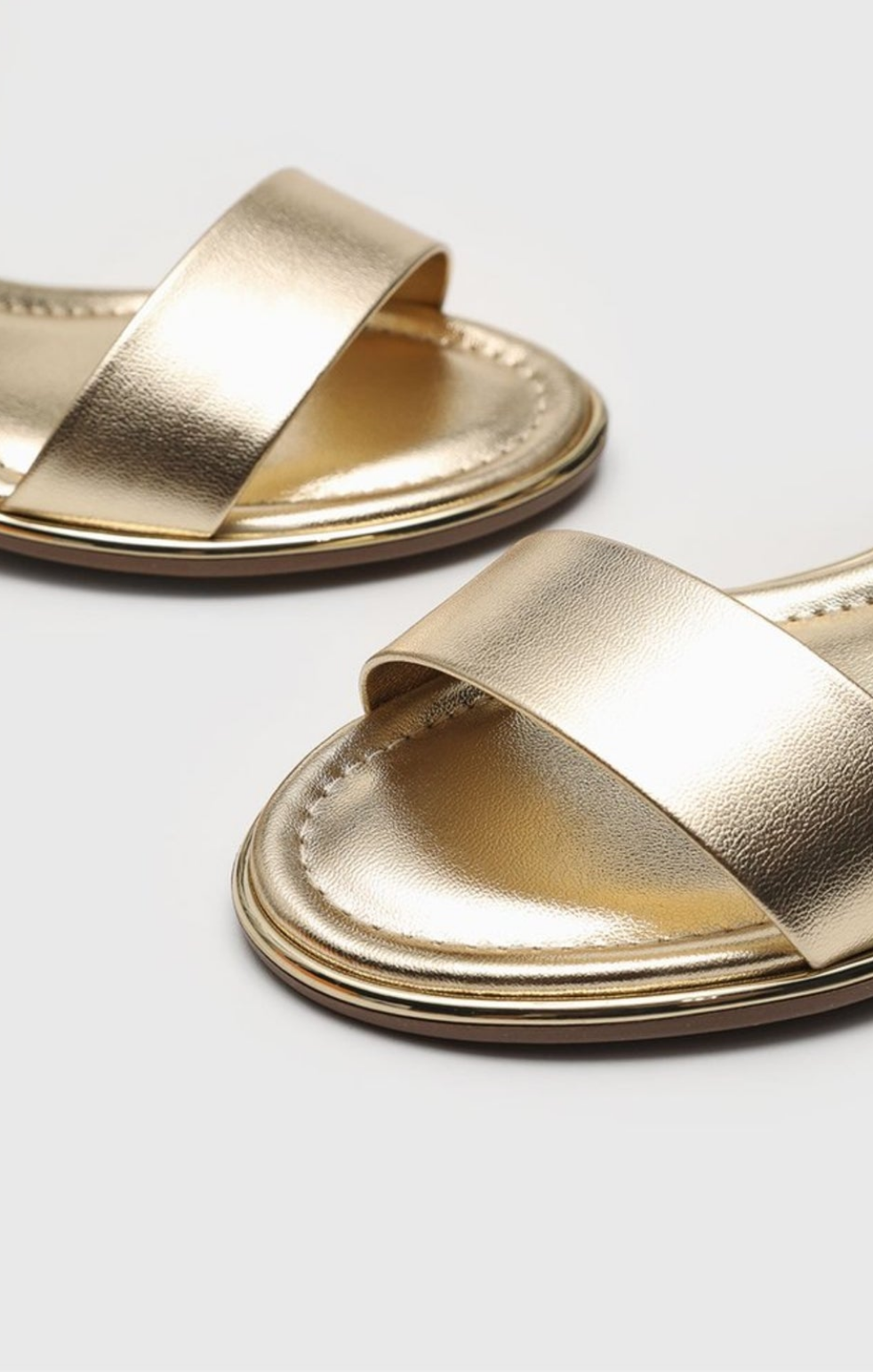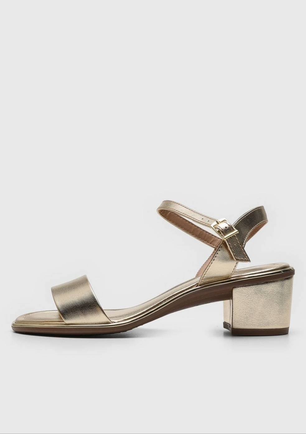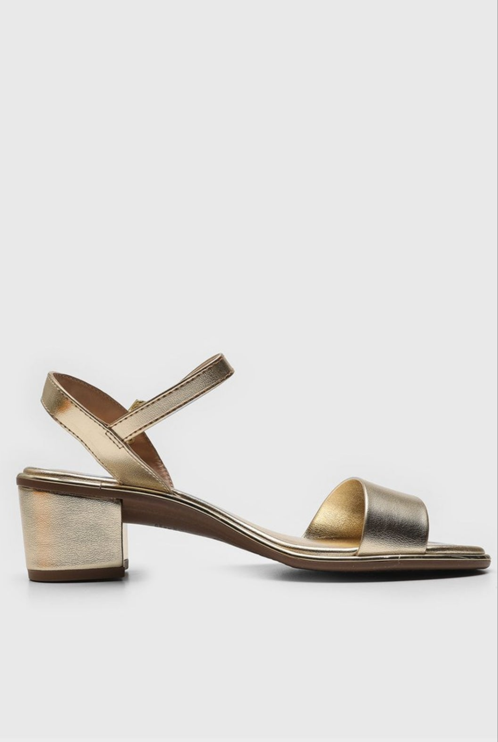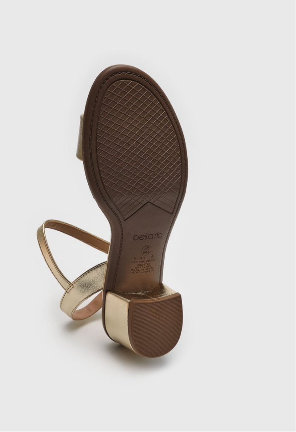 Elegancia y versatilidad en cada paso. Esta sandalia Beira Río en tono dorada destaca por su diseño minimalista y tacón medio que brinda estabilidad.