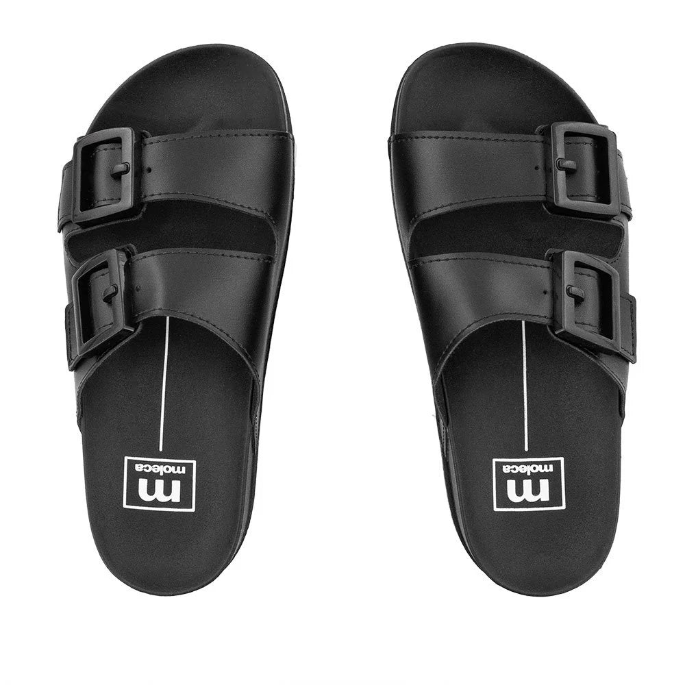 Comodidad y estilo en cada paso 👣. Esta sandalia flat negra de Moleca combina diseño moderno con funcionalidad.