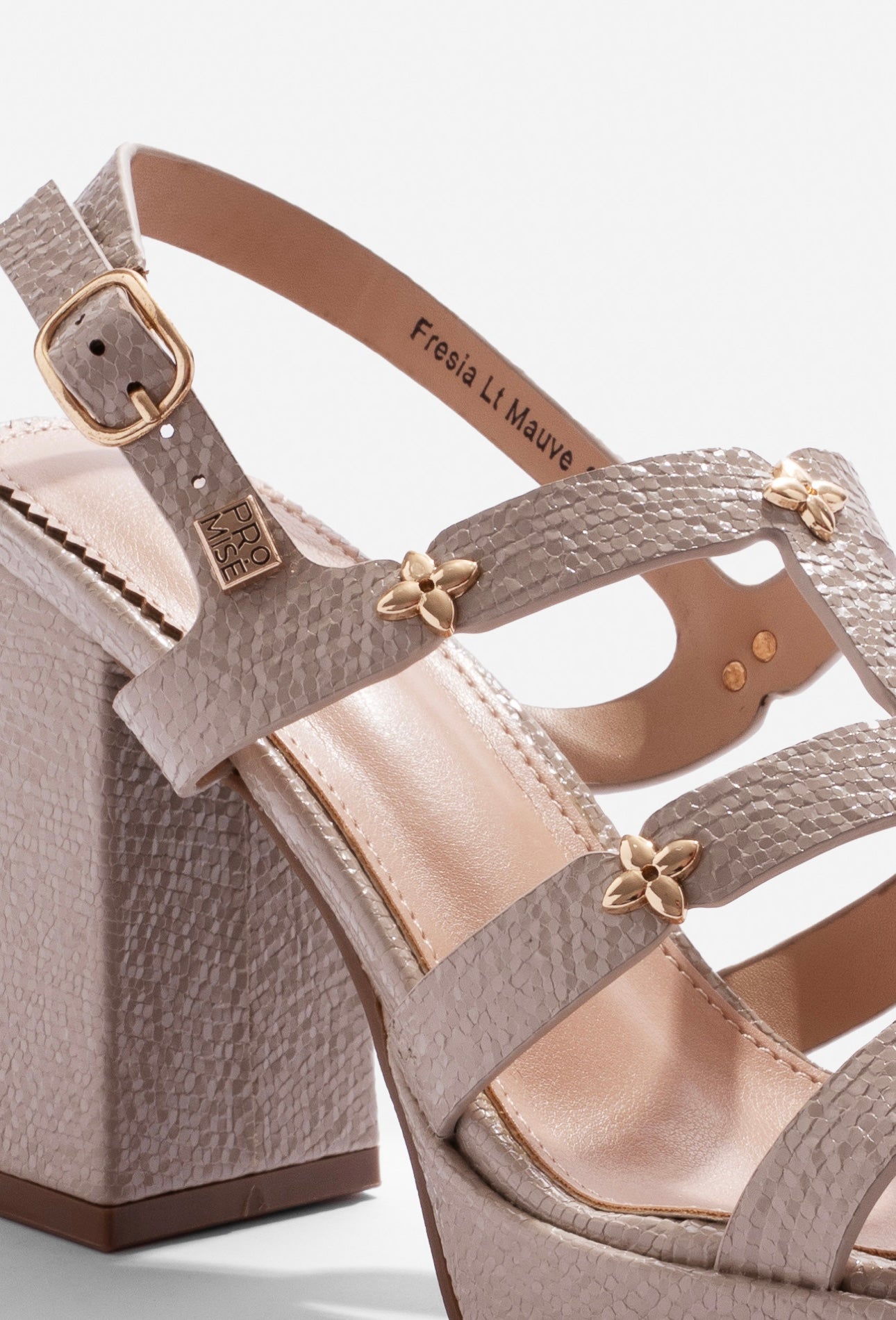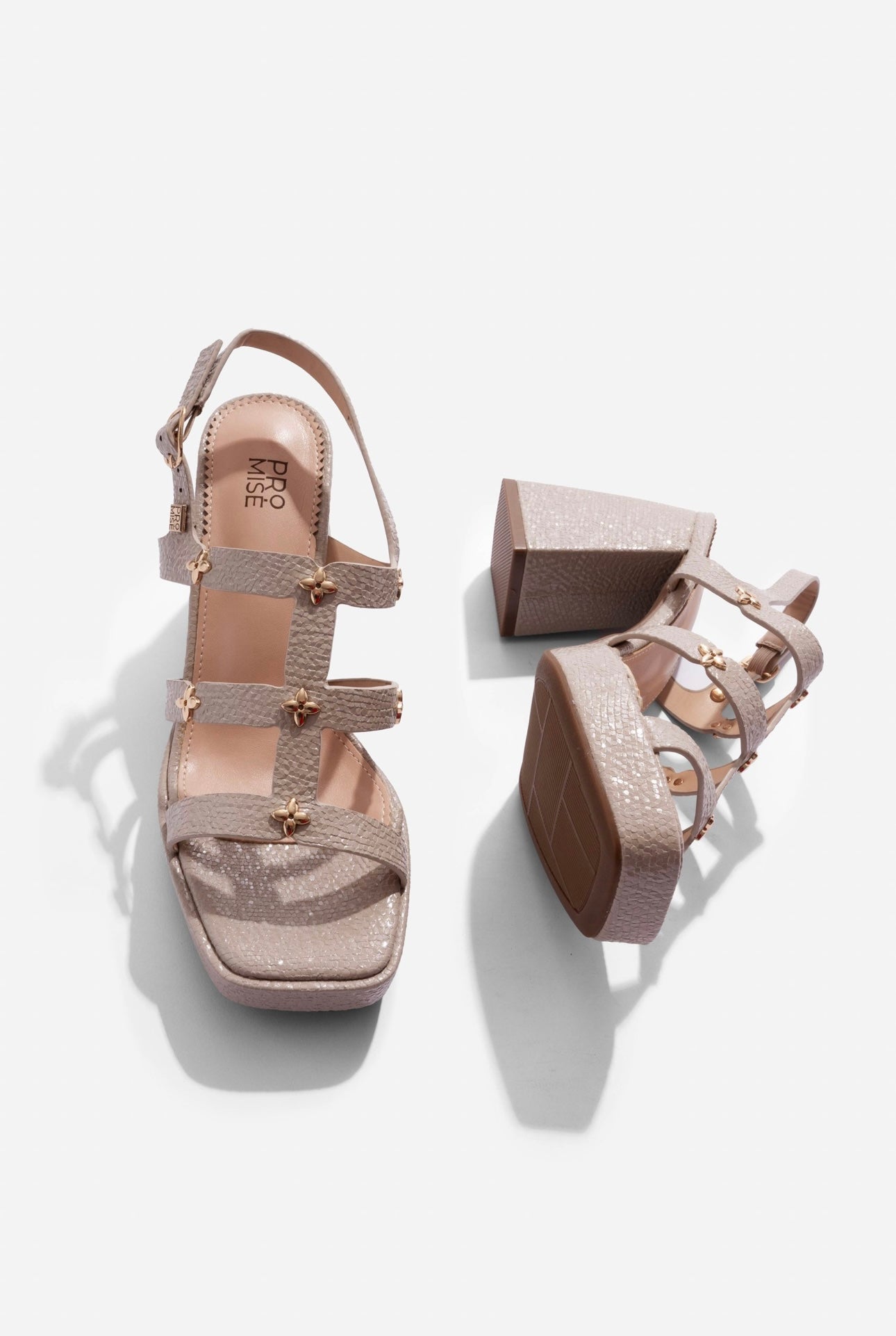 Eleva tu estilo con la elegancia de la sandalia Promise Fresia 👡. Su diseño con tacón ancho de 12 cm y plataforma de 4 cm brinda altura y estabilidad en cada paso.