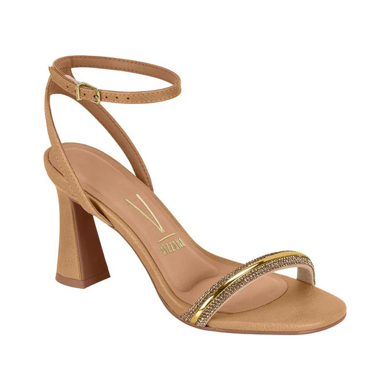 Eleva tu estilo con esta sandalia Vizzano dorado de tacón ancho de 9 cm.